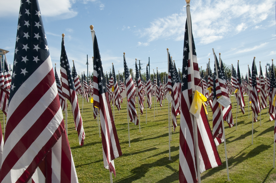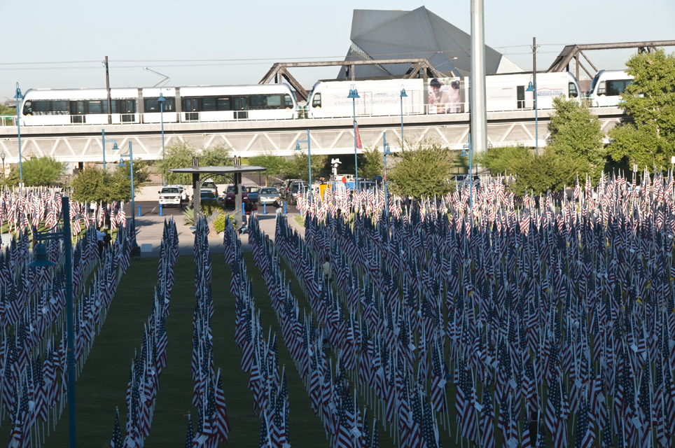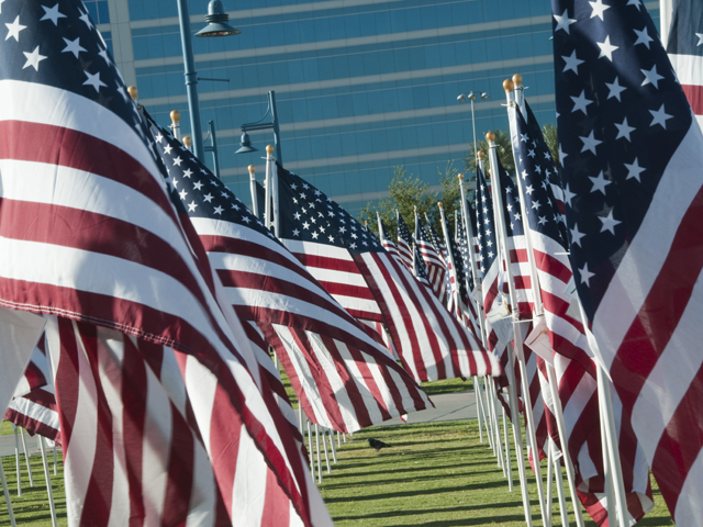 A memorial to those that died on 9/11. A flag for every person that died that day.